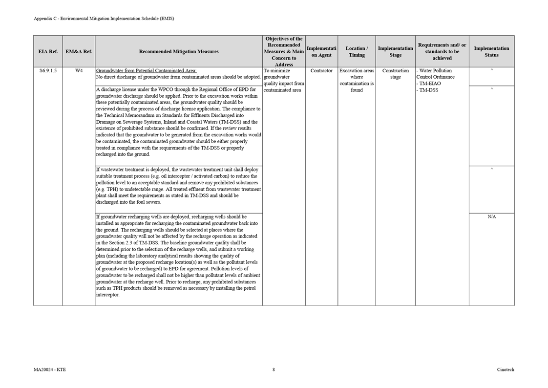 Appendix C Environmental Mitigation Implementation Schedule (EMIS)