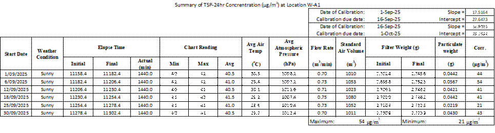 A.5 Joint weekly site inspections were conducted by representatives of the Contractor, Engineer and Contractor’s ET on 4, 11, 17 and 25 September 2025. A joint site inspection with IEC was undertaken on 17 September 2025. Details of the audit findings and implementation status are presented in Section 5.